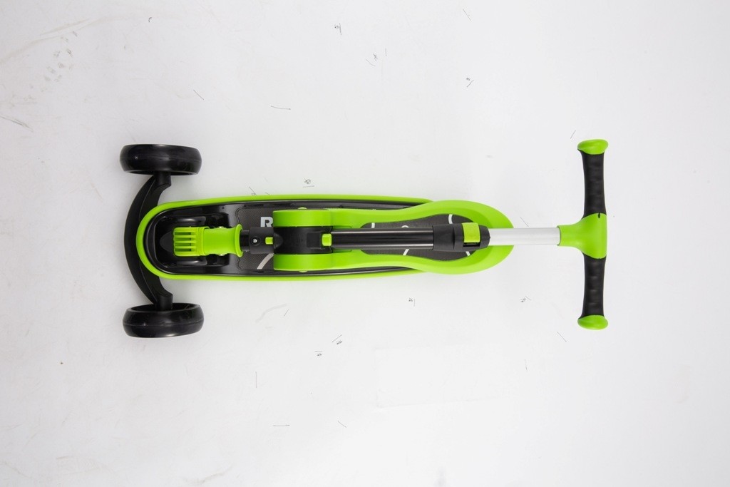 Height-adjustable folding steering wheel. Folding seat. Illuminated LED wheels without the need to change the battery. Non-slip floor. For ages from 3 to 12 years. Maximum weight 50 kg. Rear wheel brake. Available in both green and orange.