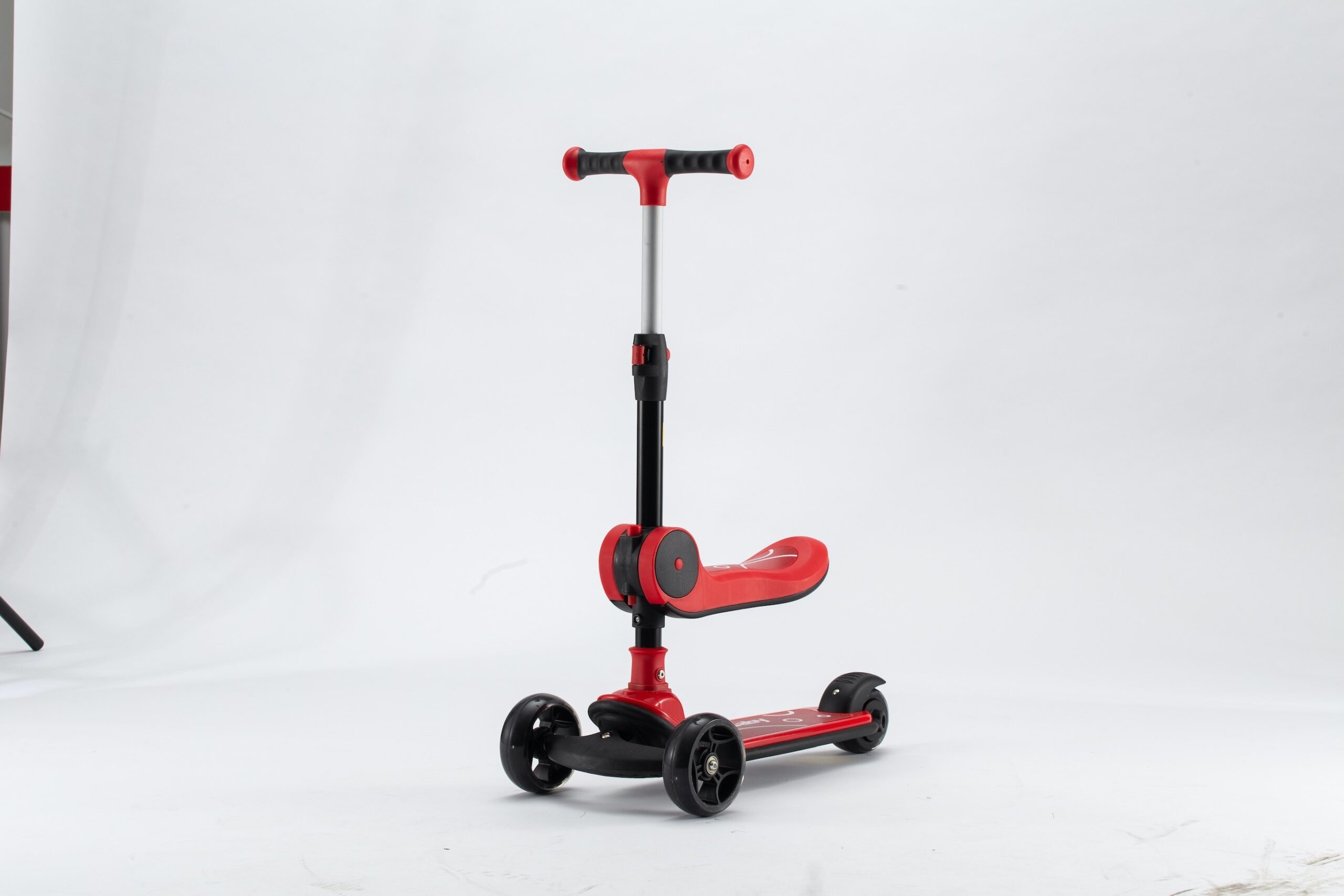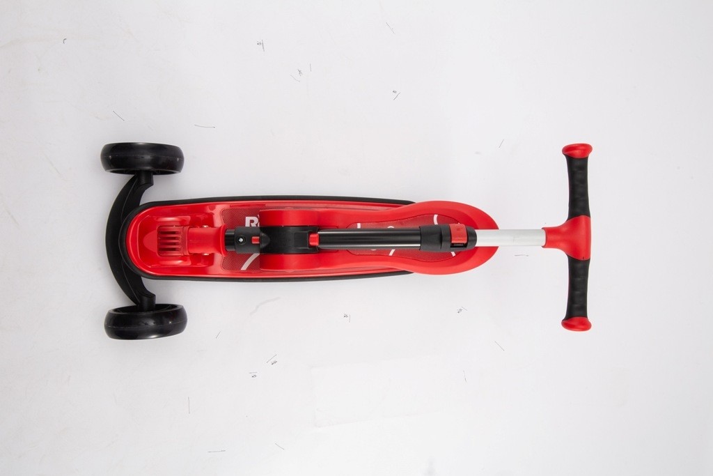 Height-adjustable folding steering wheel. Folding seat. Illuminated LED wheels without the need to change the battery. Non-slip floor. For ages from 3 to 12 years. Maximum weight 50 kg. Rear wheel brake.