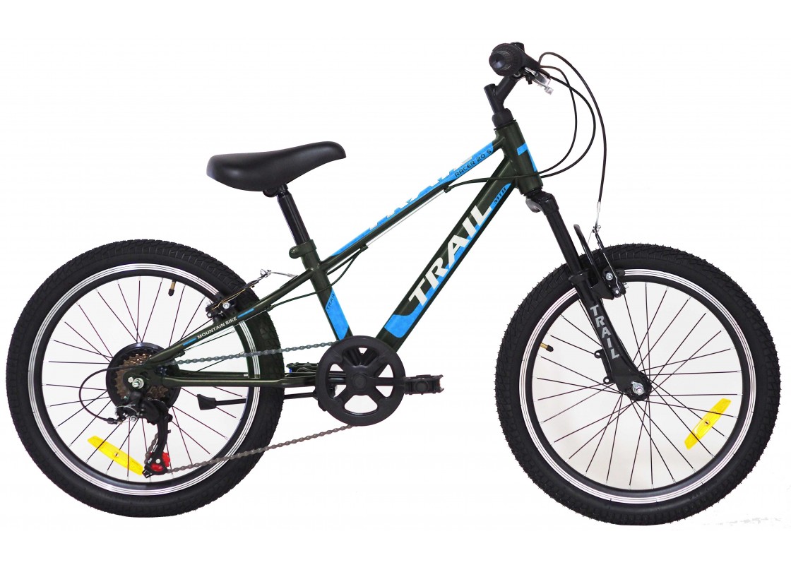 To TRAIL 20″ ένα mountain ποδήλατο με τροχούς 20 ιντσών, σιδερένιο σκελετό και γεωμετρία σχεδιασμένη ειδικά για να μην καταπονείται το σώμα από την στάση οδήγησης. Είναι εξοπλισμένο με σύστημα ταχυτήτων Shimano για εύκολες αλλαγές ταχυτήτων και πιρούνι το οποίο διαθέτει ανάρτηση ώστε να προσφέρει άμεση απόκριση και ανετη οδήγηση.